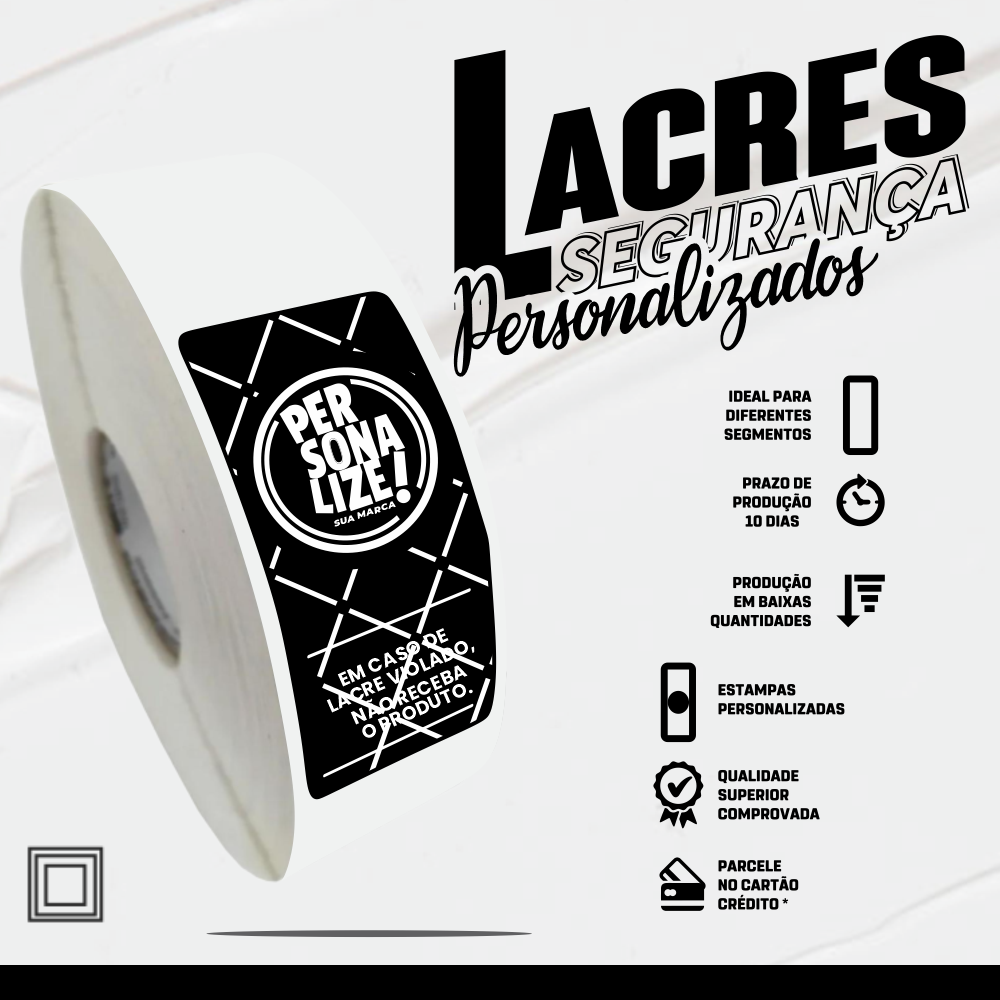 A melhor forma de lacrar seus produtos. Fabricados em Couchê 80g em 1 cor preto e com ótima fixação eles cumprem o seu papel dando ao seu cliente mas credibilidade e segurança ao receber seus produtos.